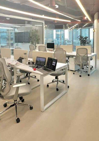 A high-profile workspace in a busy urban center required a sophisticated, durable flooring solution that could be applied without the noise and disruption of traditional demolition. The project demanded a balance between minimalism and extreme durability to withstand daily professional activity.